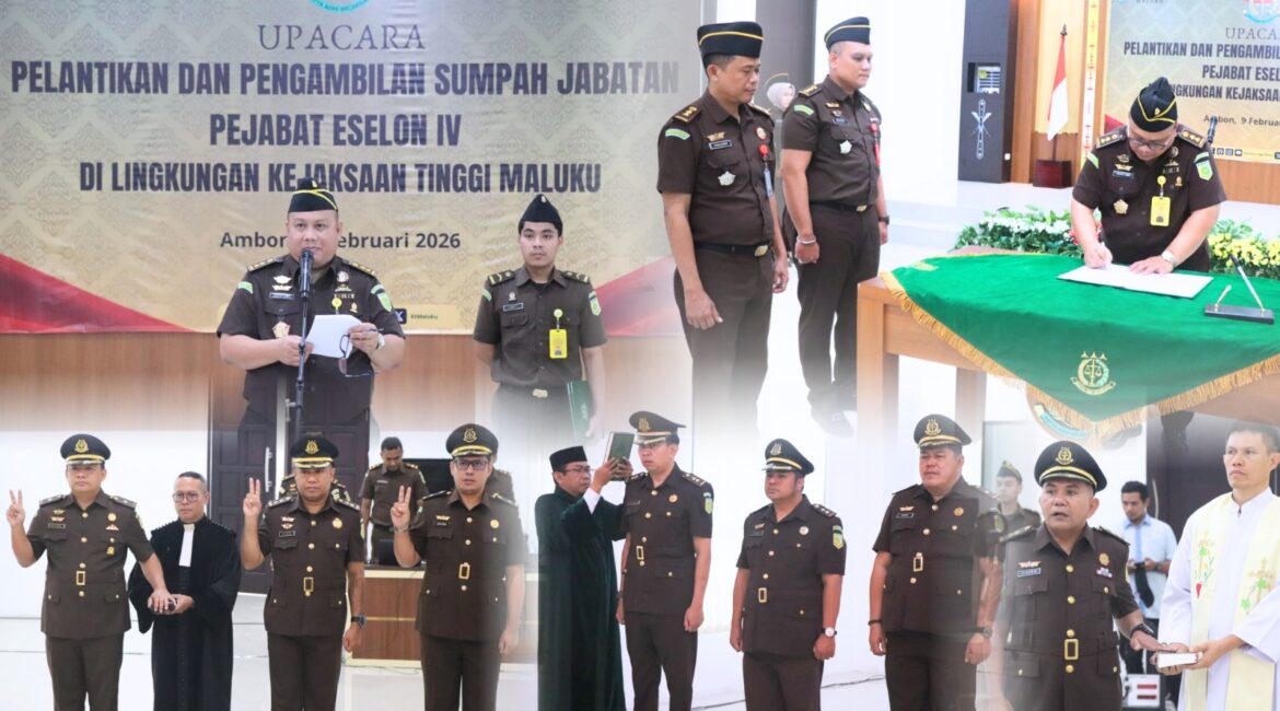 Ambon , CENGKEPALA.COM – Sejumlah pejabat Eselon IV di lingkup Kejaksaan Tinggi Maluku resmi dilantik pada Senin (9/2/2026) di Aula Sasana Adhyaksa. Pelantikan dilakukan oleh Asisten Pembinaan Cahyadi Sabri, S.H., M.H., yang mewakili Kepala Kejaksaan Tinggi Maluku. Adapun delapan pejabat yang dilantik beserta jabatan baru dan masa jabatan sebelumnya adalah...