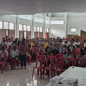 Bertempat di kantor Jemaat GPM Waai, Rabu (17/12) Ketua DPW GP PP Maluku Eliza A. de Lima, SH. MH yang juga Ketua Harian DPD KNPI Maluku membagikan 200 paket sembako dan bingkisan Natal dalam kegiatan bakti sosial tersebut.