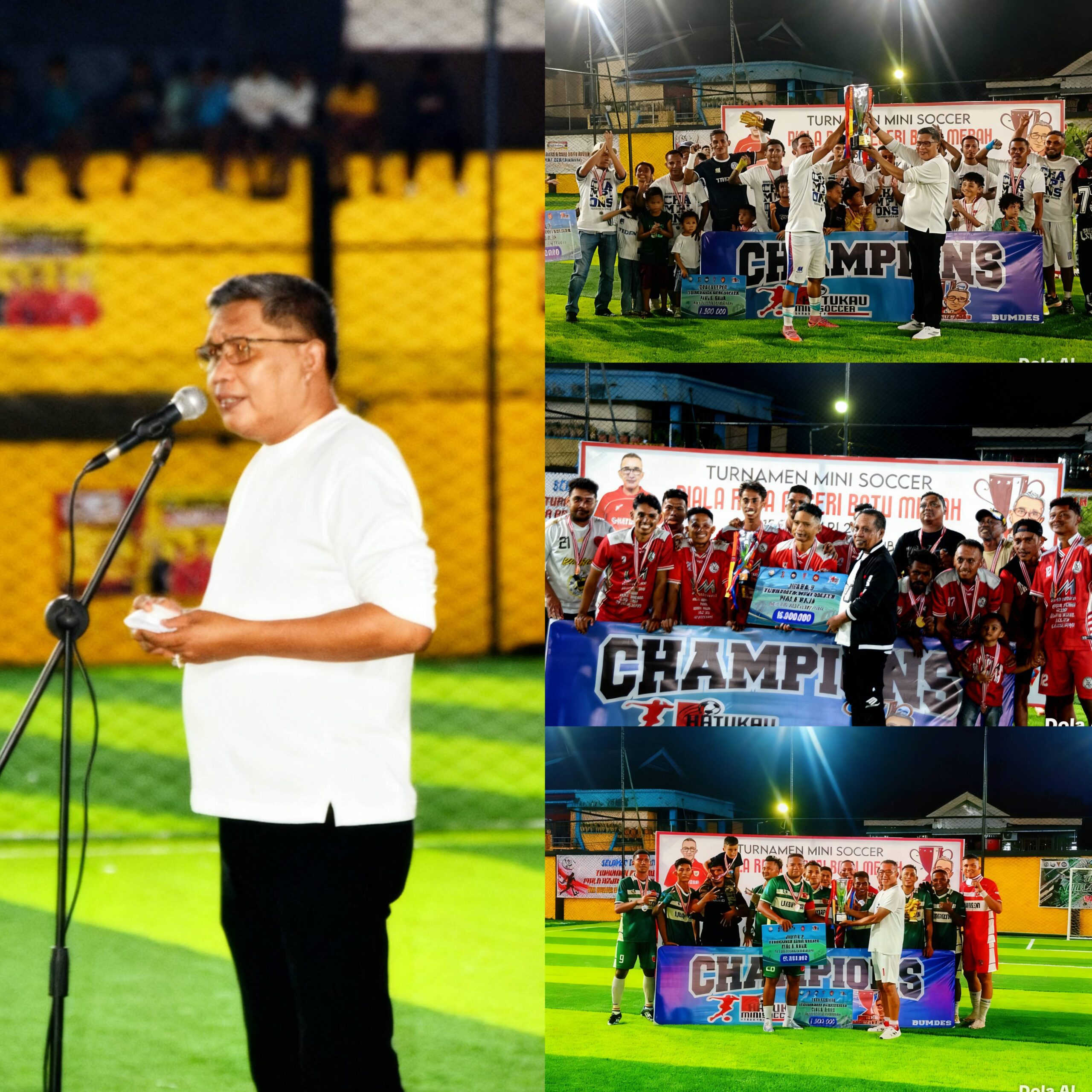 Ambon, CENGKEPALA.COM – Turnamen Mini Soccer Piala Raja Negeri Batu Merah resmi ditutup pada Minggu (15/2/2026) di Lapangan Hatukau, Batu Merah. Acara penutupan yang meriah ini dihadiri langsung oleh Penjabat Walikota Ambon, Bodewin Wattimena, serta Ketua DPRD Kota Ambon, Mourits Tamaela. Dalam laga final yang berlangsung sengit, tim Tidenti FC berhasil keluar sebagai juara, mengukir sejarah sebagai peraih Piala Raja Batu Merah pertama.